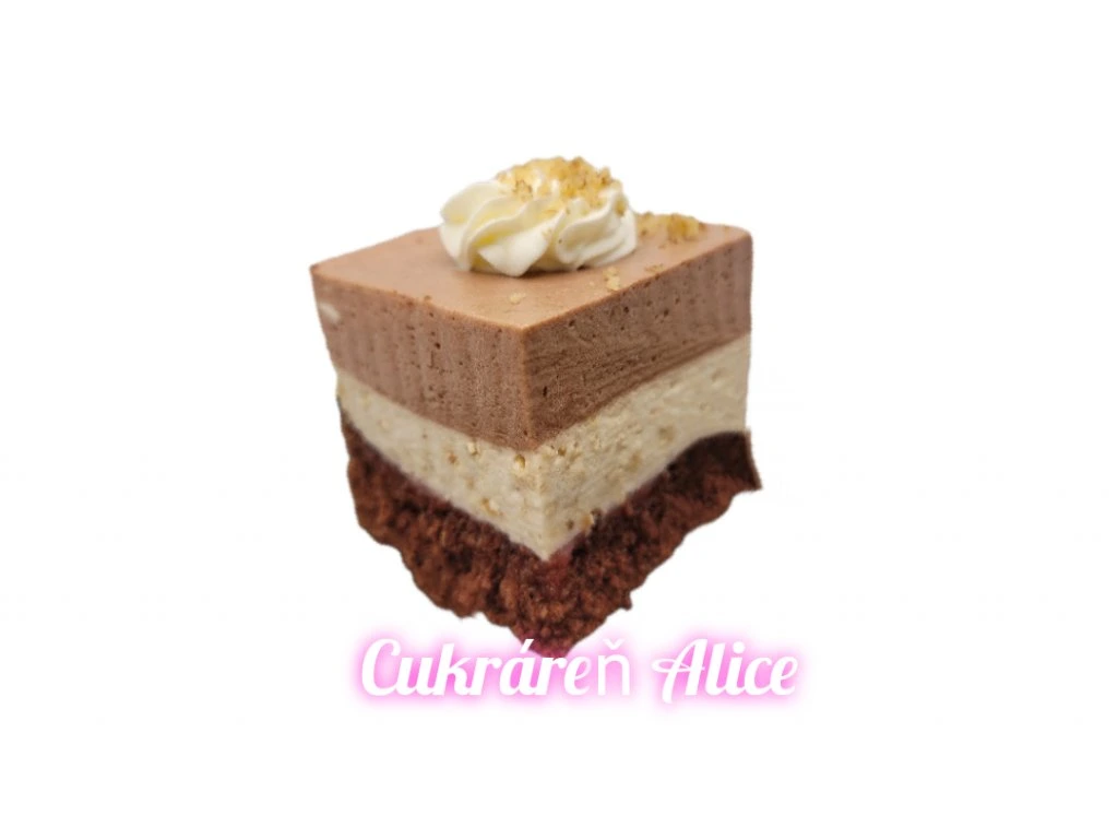Čokoládový korpus kocky dopĺňa smotanová a čokoládová plnka s praženými orieškami. Je zdobený šľahačkou a drobnými nasekanými orieškami.